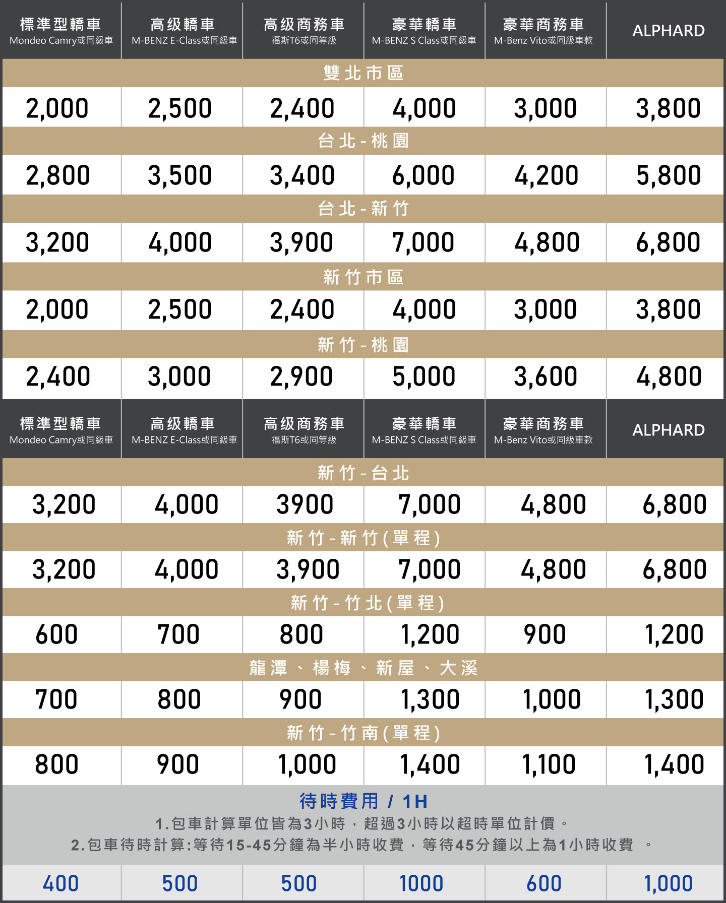 _ 取消費用:{訂單時間1H內}100%  {訂單時間1H-2H}50% {訂單時間2H-3H}30%